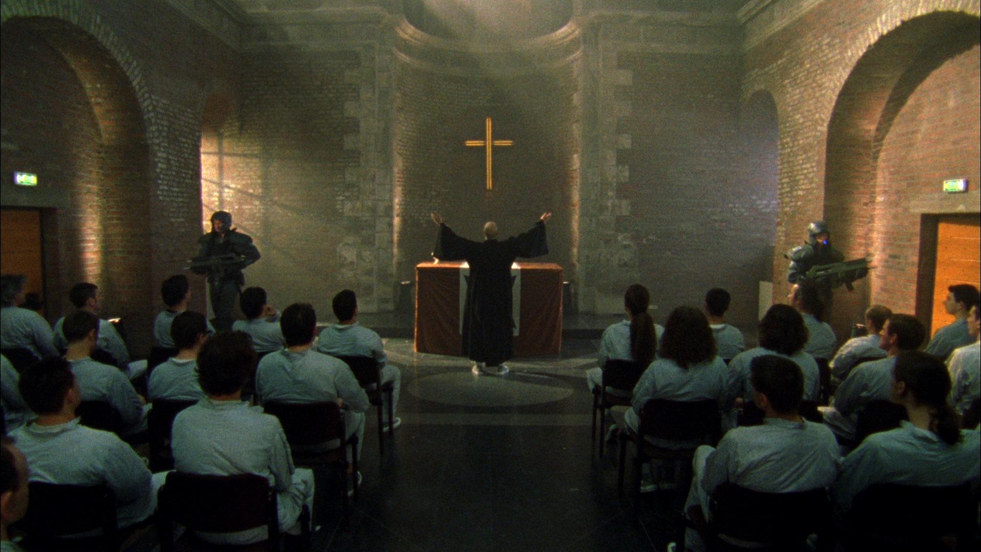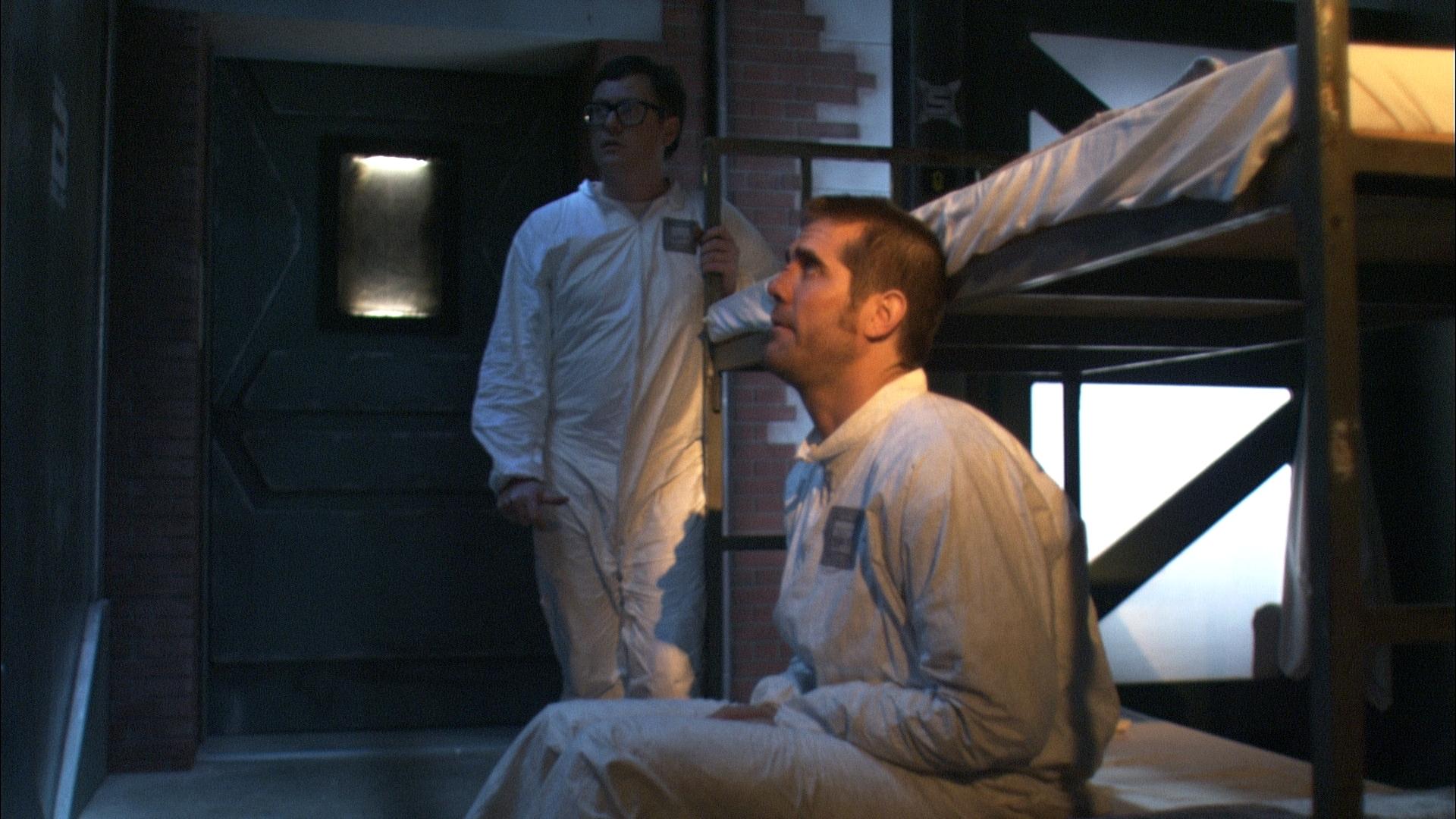 A private fortress-like prison in a deserted landscape of the near future. Heavily armed guards, thick walls, total surveillance. No privacy. No hope. No escape. Outside, the danger of a final, annihilating thermonuclear war dominates humanity's psyche - and the lurid media exploits this foreboding. Inside the cavernous industrial-style fortress prison, with nowhere to go, the jailbirds seek sanctuary either in faith or in madness. Or both.