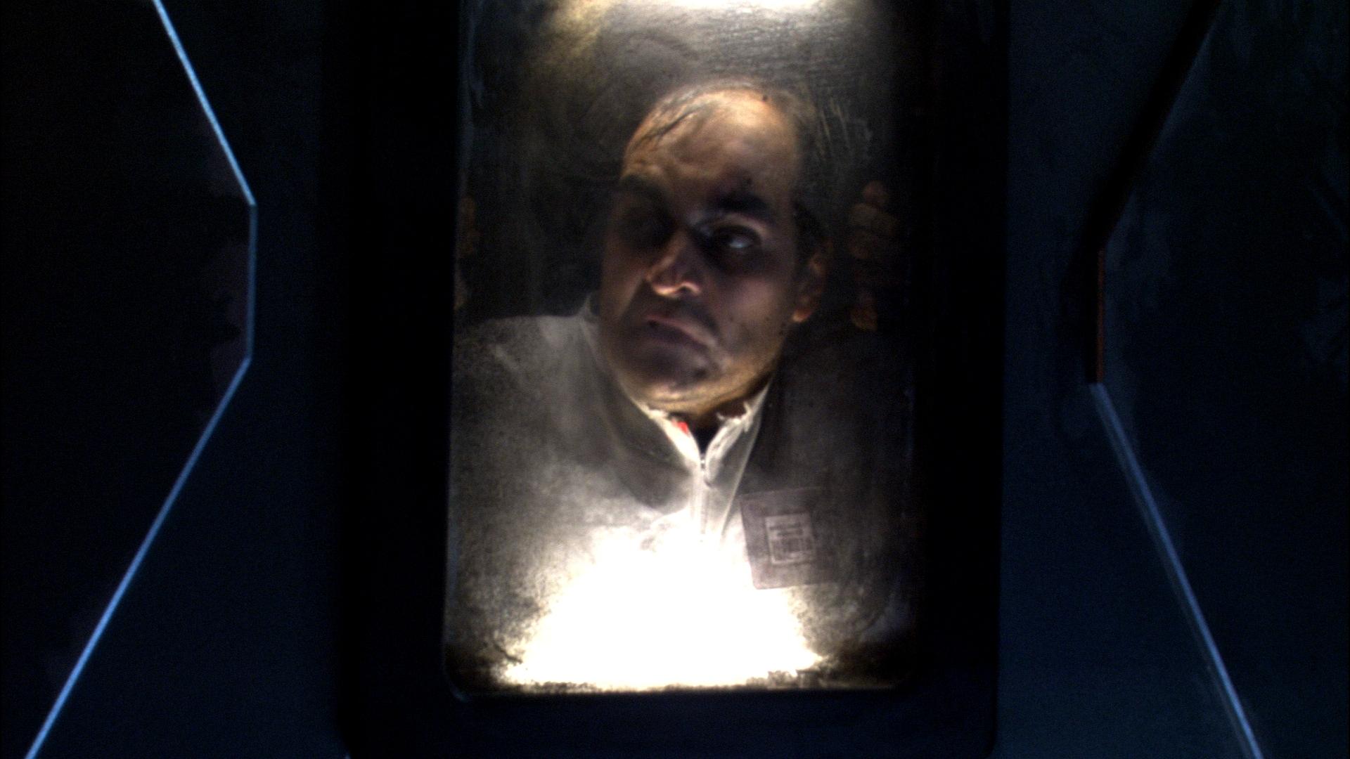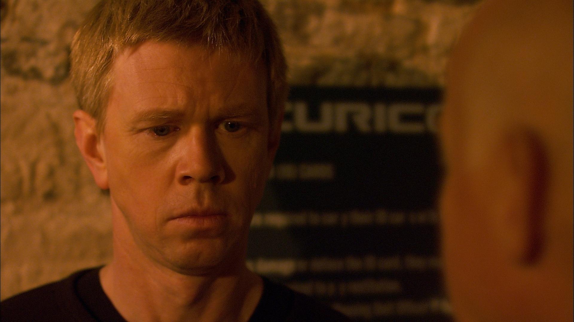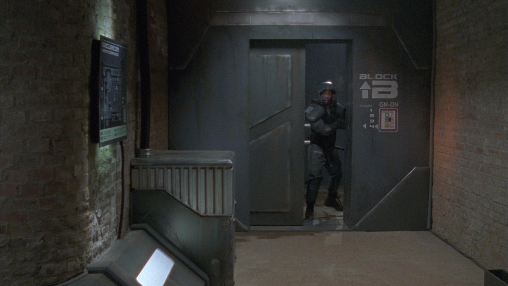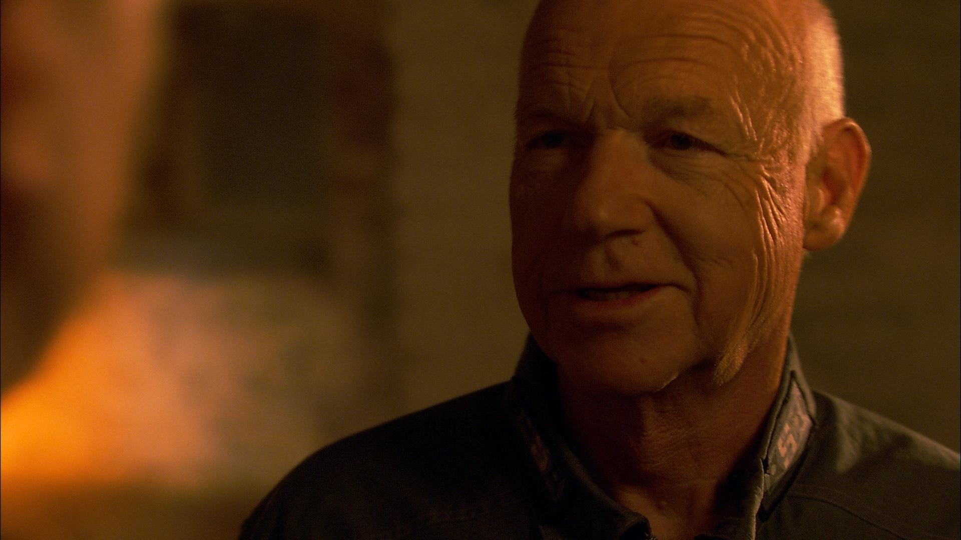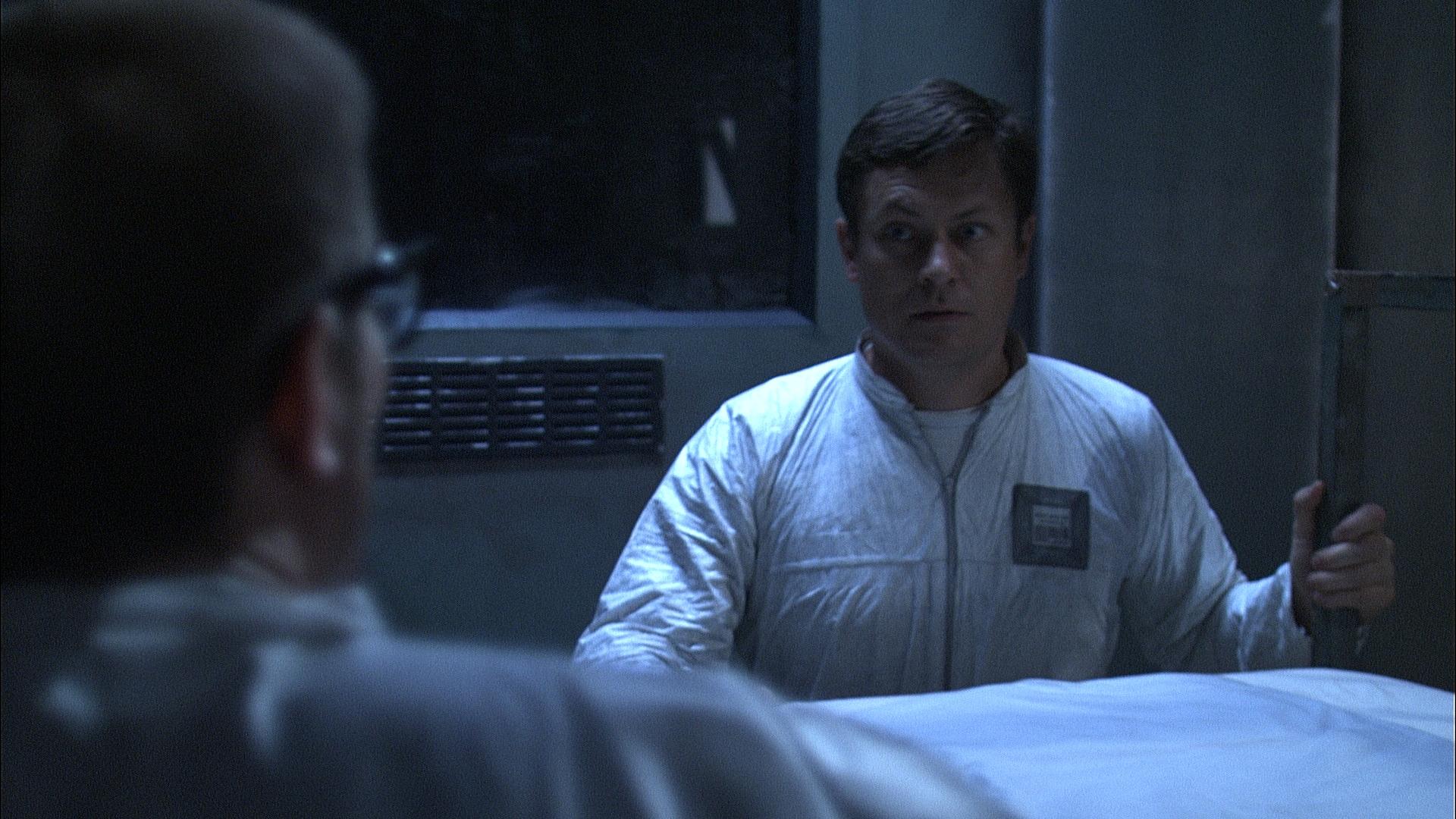 We did two more explosions, all from different angles. We´re almost done for this night. What follows, is basically a repetition of the shot before. Everything is set up again, another camera position is prepared, this time inside the cell, from a low angle on Steve Hudson. Bang ! Steve is blown away again ! He lands safely on the mat, catched by a production assistant. Again playback to check the shot. Done !