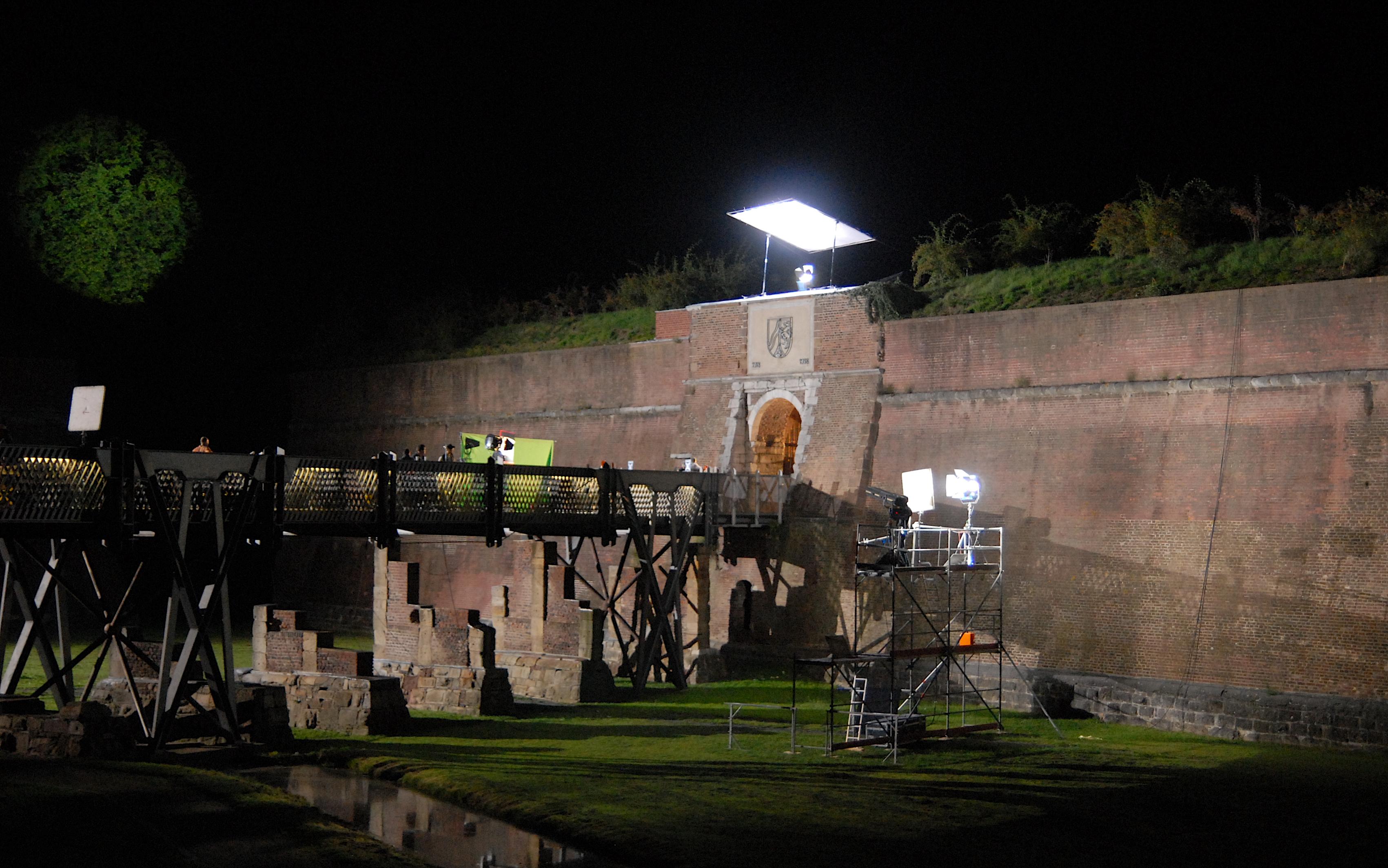 So this is it. After weeks and weeks of prepping, phase III of REAL BUDDY is about to start today with a big exterior: The fortress bridge scene. Everything´s on go, except for the bad weather forecast for this week, which makes us worry. All the shots are done at night again. First, because we have those night exteriors, second, because it´s the only time of the day we can record sound. During days, it´s impossible, way to much noise around everywhere. One of those disadvantages of location shootings, but we´re used to it. We need to get those two nights here in the can, no matter what, due to the availability of actor James Matthews, who plays one of the guards in this scene. Hope luck is on our site again.