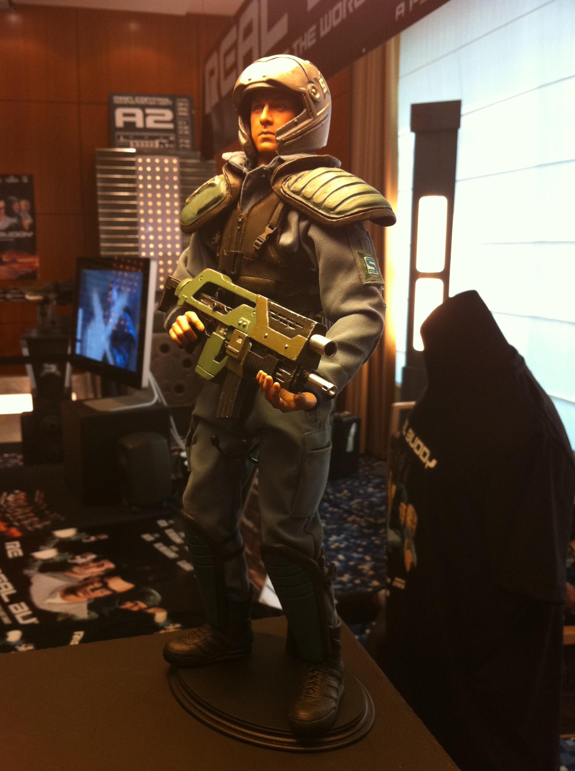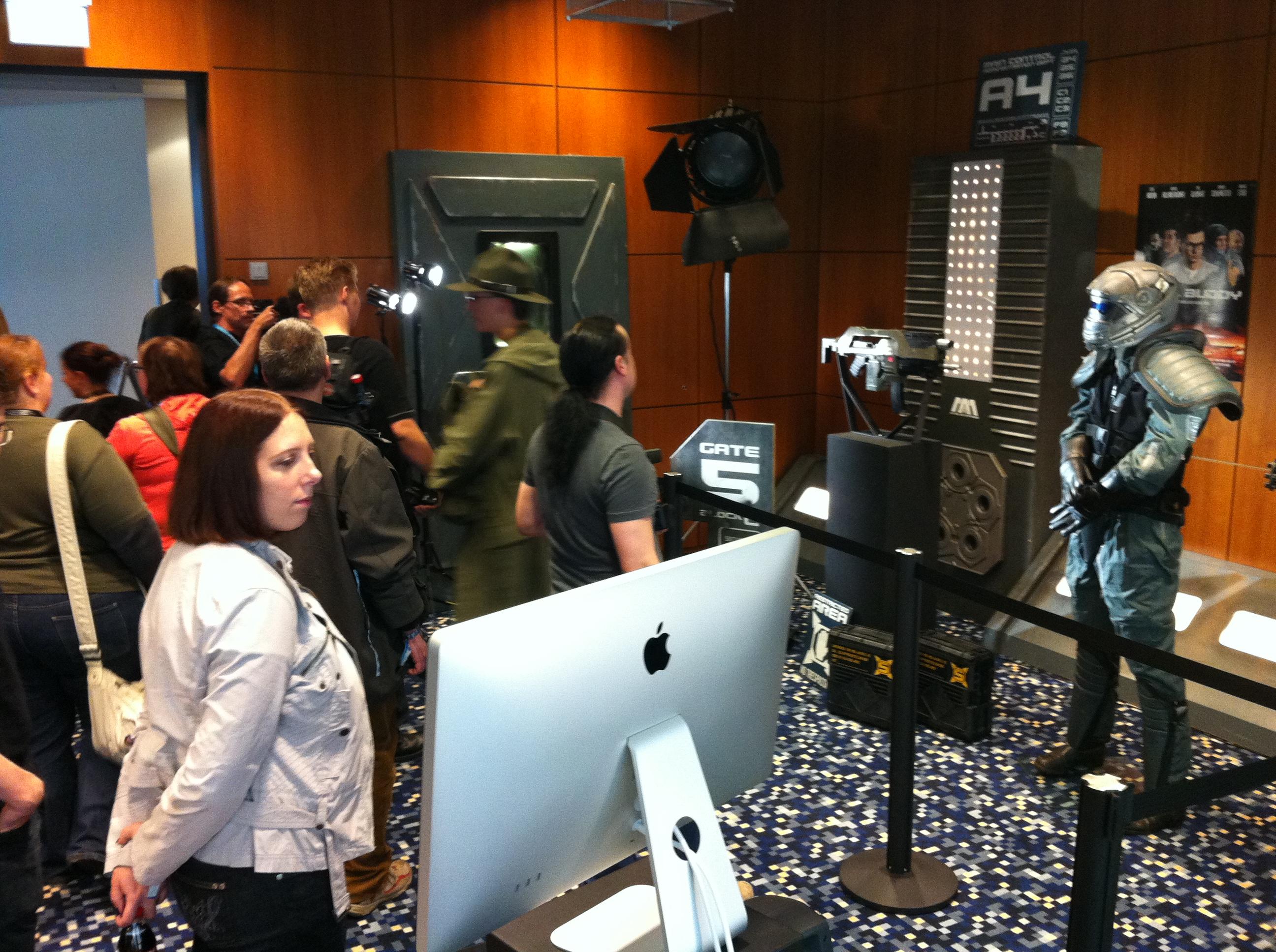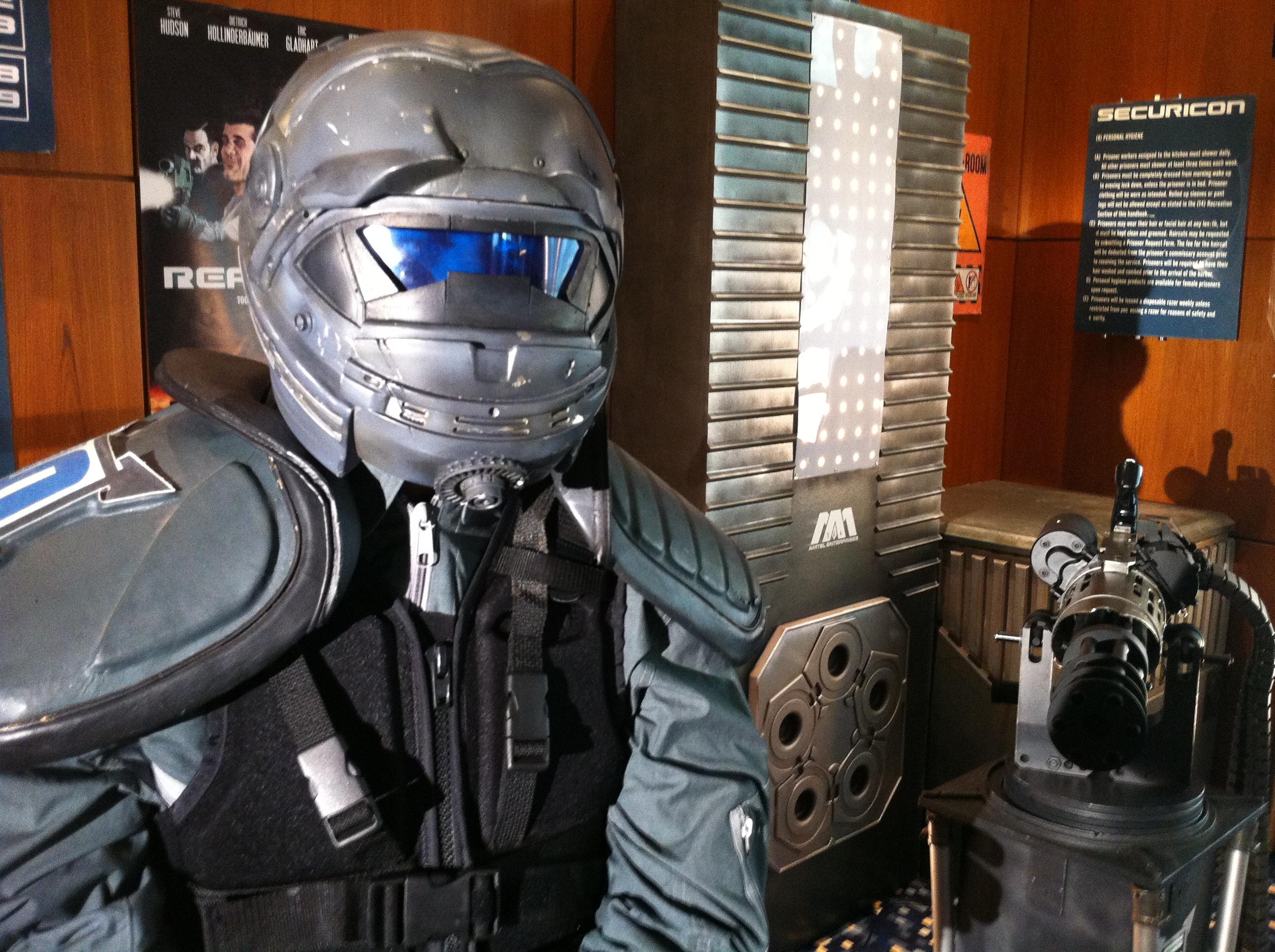 For the first time, we presented original props, set pieces and costumes to a large audience. What better event can one think of than Europe´s biggest SciFi convention ? Thousands of people came to see our exhibition during the four days of FedCon in Düsseldorf, shot videos, took photos and asked questions, the press was present also. REAL BUDDY T-Shirts and posters were sold, people had an exclusive first glance at our 1:6 Securicon guard action figure, soon available in a limited edition from SpaceArt (spaceart.de).