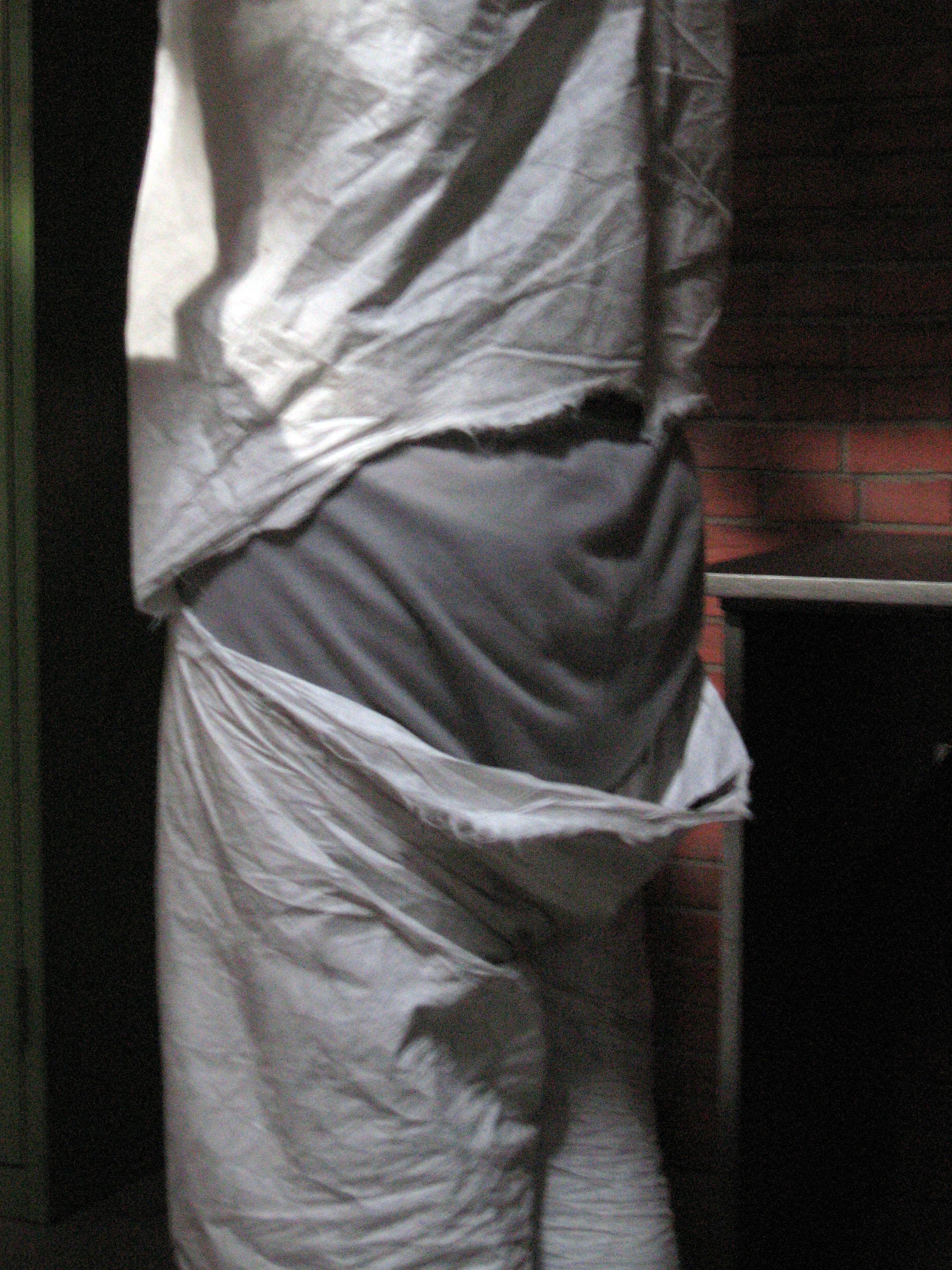 Another costume ruined ! Helen decides to go the easiest way and asks for some gaffer´s tape. She manages to get the tape inside the costume, putting the parts back together. I doesn´t look perfect, but it´ll do for the rest of the day. Hope we do not end up reconsidering framing for some shots due to the costumes falling more and more apart.