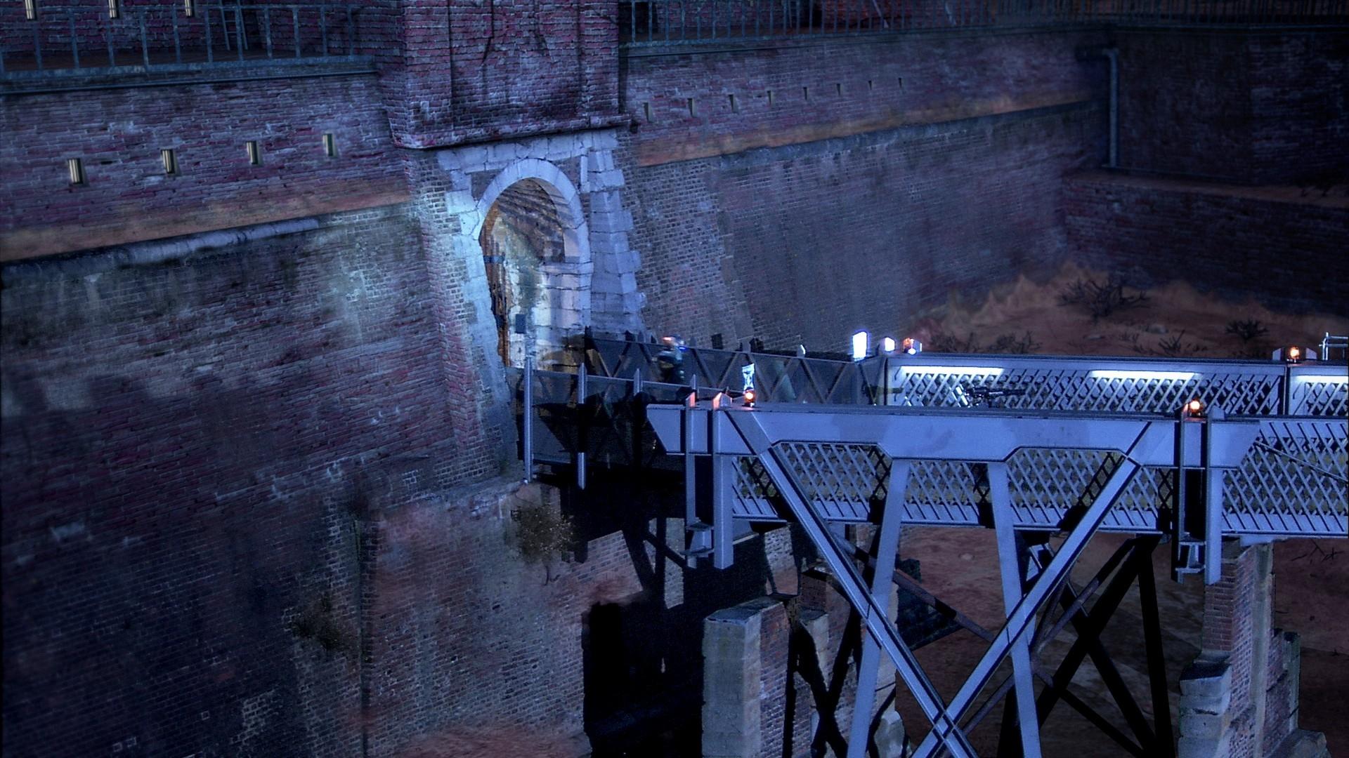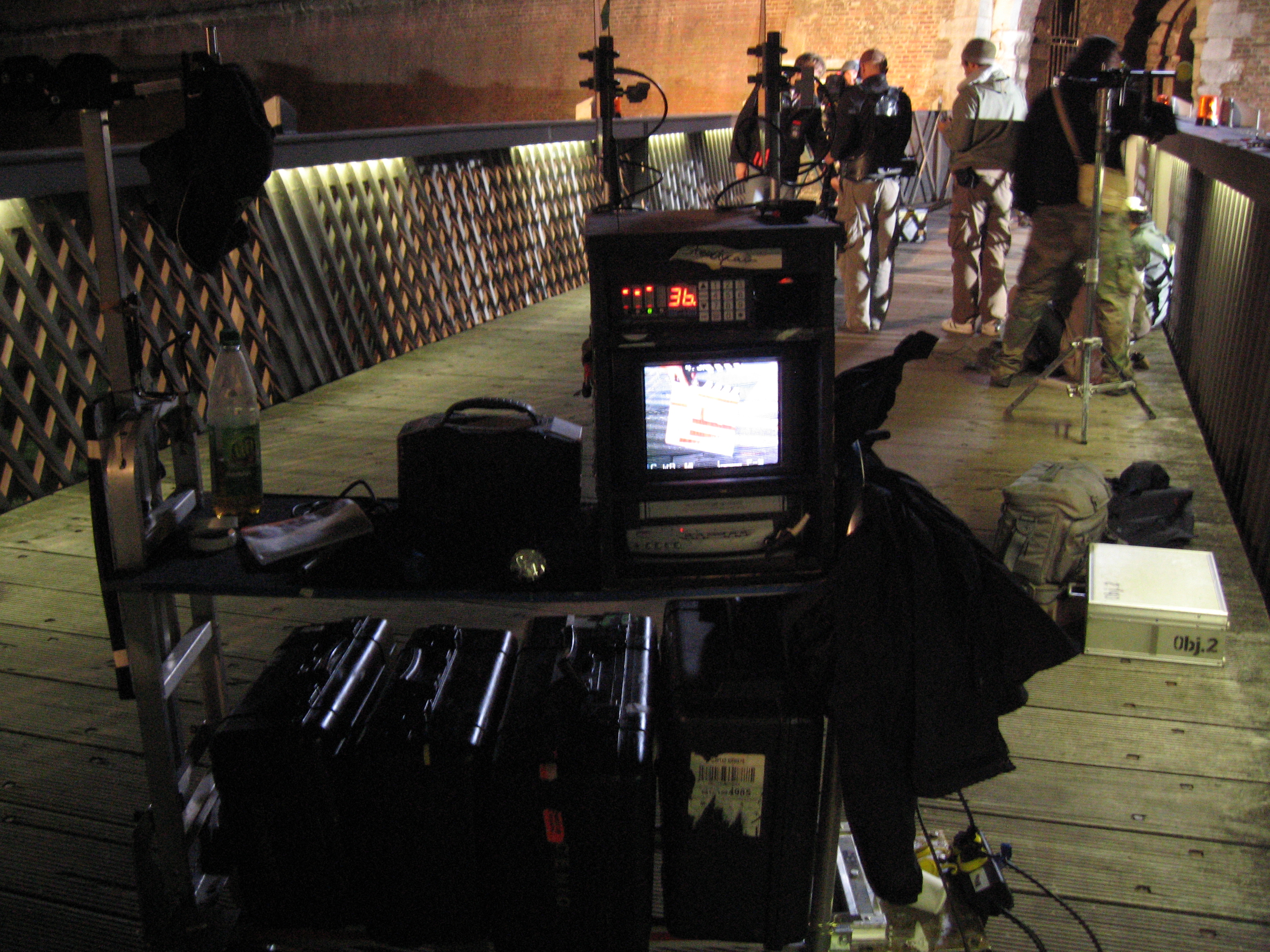Deja vu:. With each shooting phase, we have to start with the more complicated stuff, although I much prefer to get the team “warm” and going with more easier things at the beginning. But – Murphy´s law - it just never happens. In phase I, we started off with the most complicated scene of the film, the chapel scene. It included 80 extras, a mass fight with stuntman, pyro f/x, smoke, haze, and two camera units, all because the location, a real chapel – had to be done in two days. Here on the bridge, the most complicated stuff is the lighting and dry weather. Cause it´s low budget, we only have a limited amount of big HMI lights to light a huge set. A 12 K, 3 4K´s and some 2K´s to light the whole thing which is huge: The walls alone are 15m in height and 200m in width.