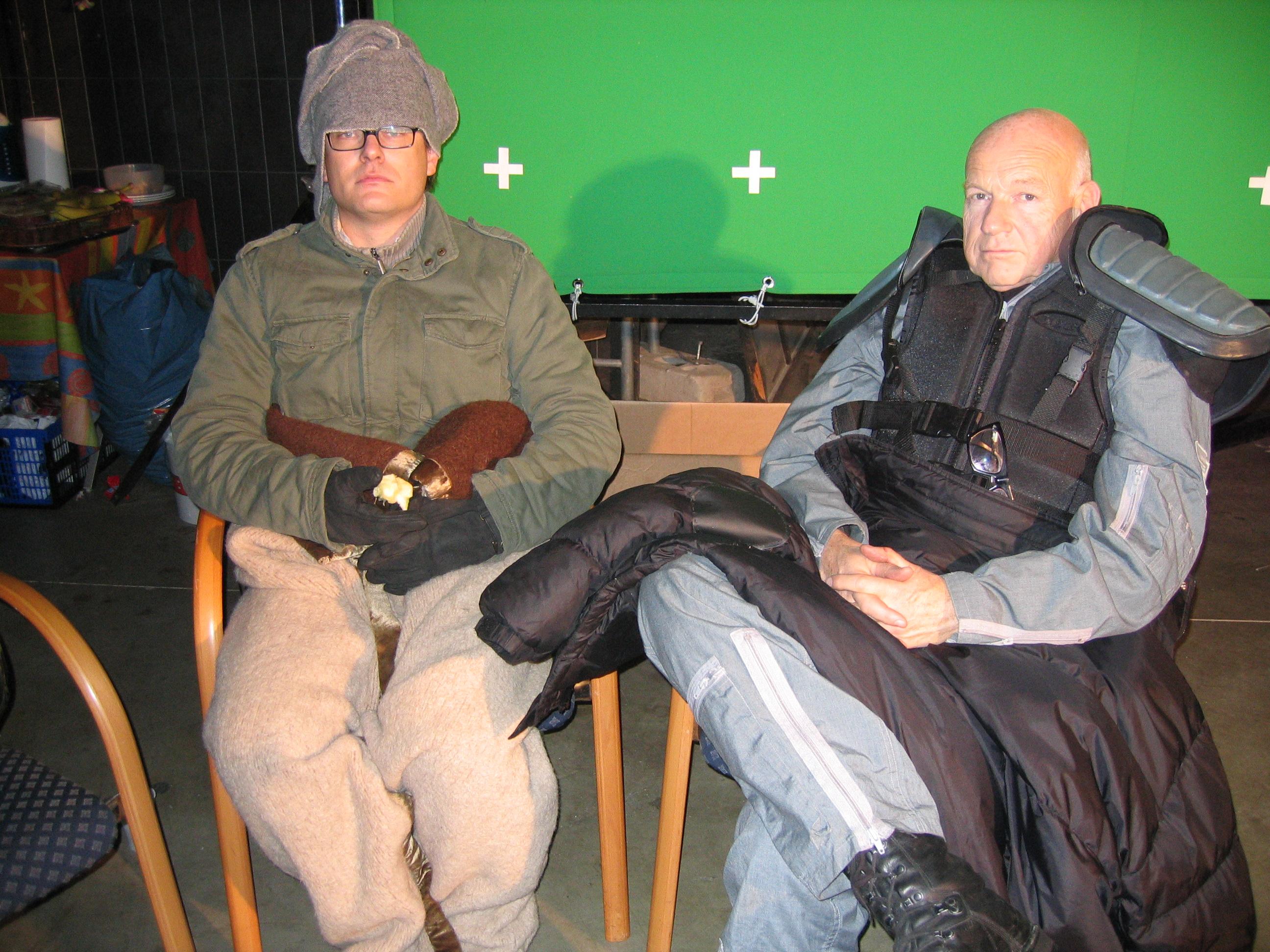 We´re done. I can´t believe the first day went so well. Brian decides to do another take, improvising. I cant describe here what he´s doing, because this would mean a heavy spoiler, but we all end up with tears in our eyes from laughing. Actually, these guys are so good I´m seriously considering to write some additional news scenes for them later, when we have a rough cut. Would be nice to have them in the film several times as a running gag.