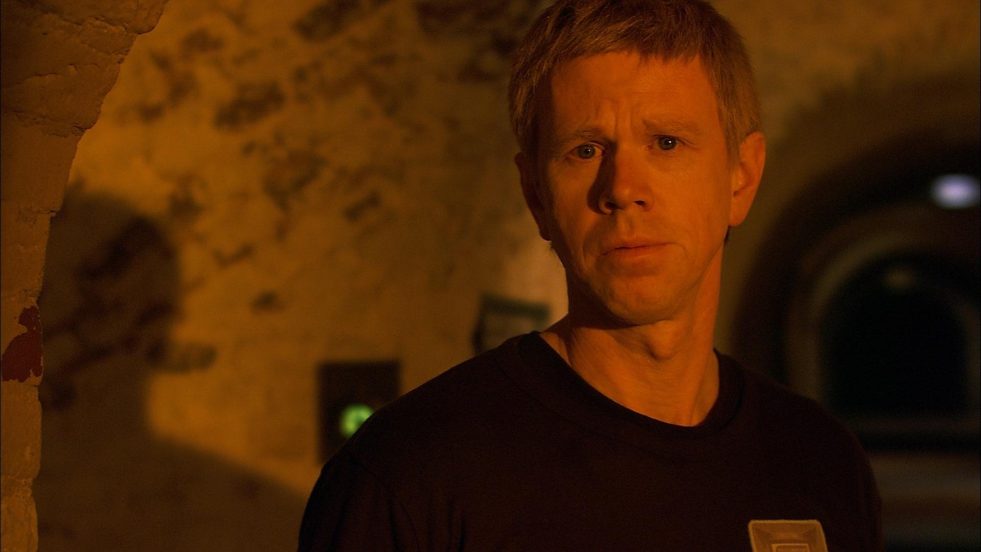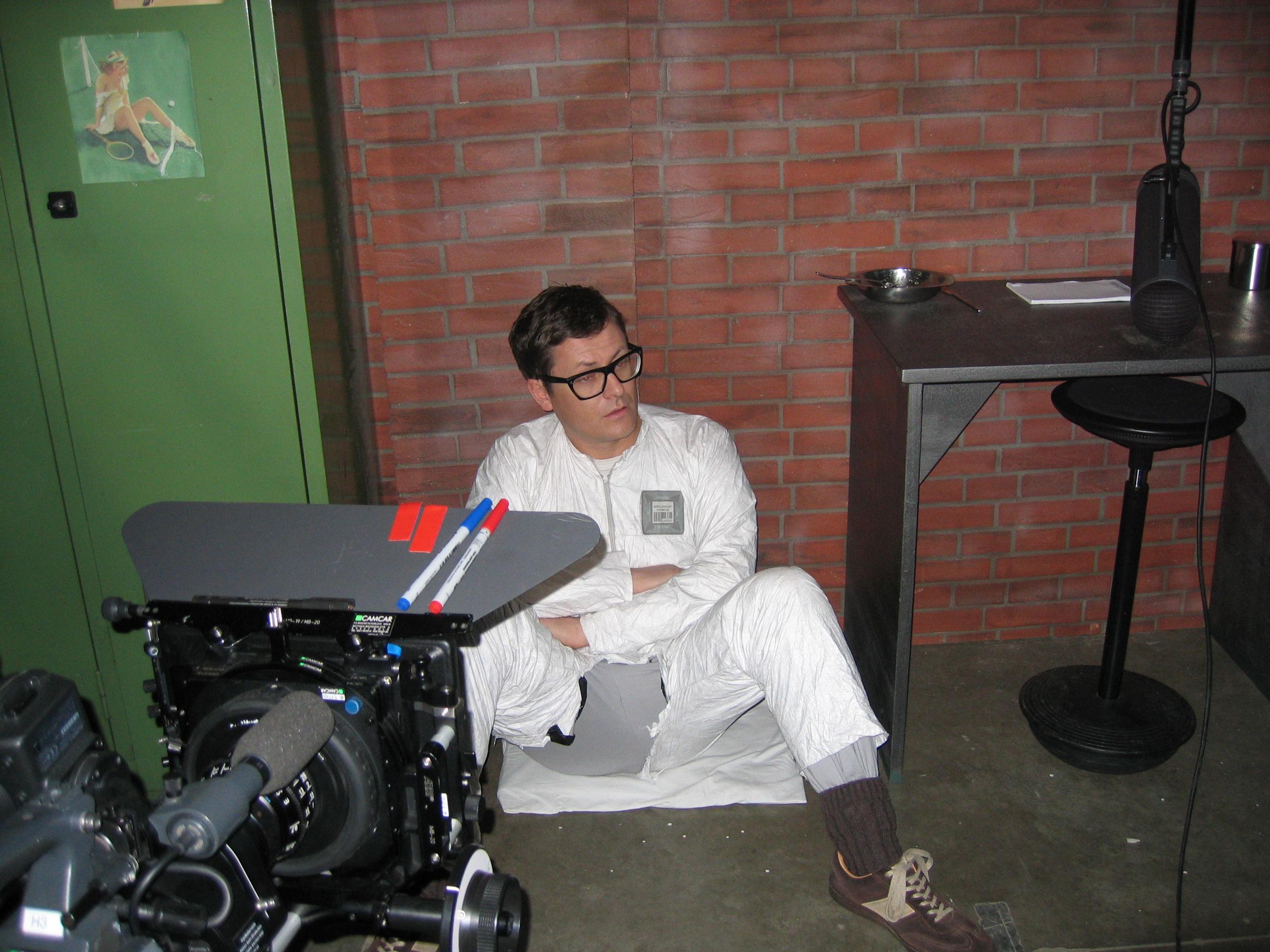 This time, we literally have to tear down most of our beautiful set. The large camera crane has to be inside the cell now. Hanno Gerken´s team is prepared, so it doesn´t take too much time, and we´re ready for a shot in which we move in on Eric Gladhart again, who is supposed to get up from the bunk bed to faceSteve Hudson. It´s Jens Fisher and me on the crane, operating. It´s late, we´re all tired due to the long hours of work the whole week, and somehow Eric still struggles with his lines again. Suddenly I feel the crane slightly moving, but not from a grips hand. I recognize the vibrations come from Jens, laughing, struggling to not ruin the shot. The problem for me with Jens laughing is, it´s exteremely contagious. I´ve learned that on many occasions I´ve been working with Jens. So I start laughing as well, while Eric, the camera in a close up on him, tries to stay concentrated. Tears start to run from my cheeks. I can´t help it. Suddenly Eric looses control and goes “What the fuck are you laughing at !?” and me and Jens laugh even harder. It takes about five minutes and some annoyed glances from the whole crew to get ourselves under control again.