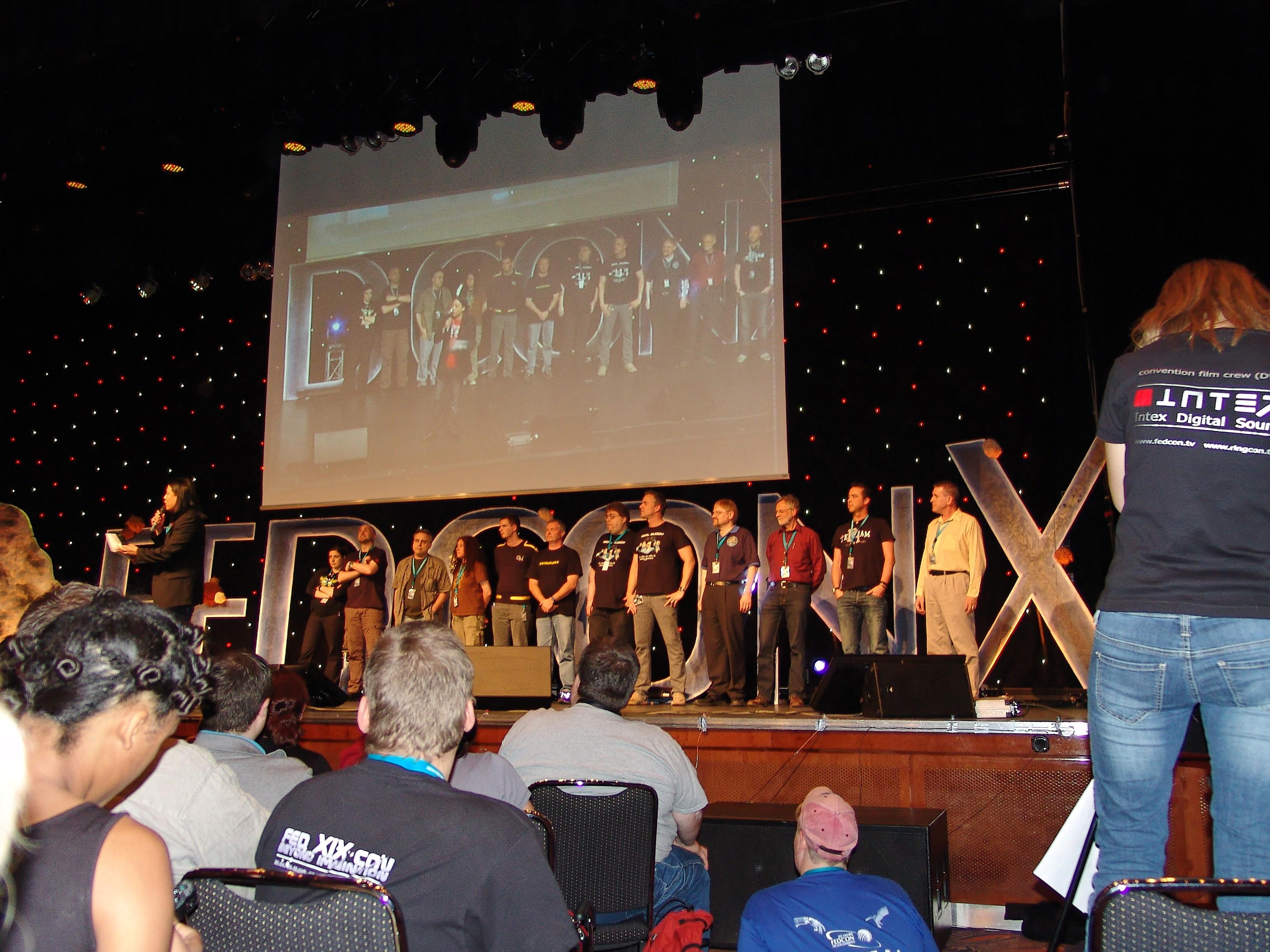 Over 400 people were visiting the REAL BUDDY panel hosted by Robert Vogel with VFX supervisor Tobias Richter, prop maker Ralf Burmester and director/producer Frank Mirbach. For the first time we presented finished scenes from the film and an exclusive FedCon making of.